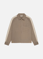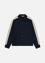 The Fraction Smart Overshirt in navy for men. A clean-cut layering piece with tonal graphics. Composed of 70% polyester, 26% viscose and 4% spandex, this overshirt includes a structured collar, patch chest pocket with branded stud, and tonal injection print across the body. Branding is placed on the chest. This overshirt has a regular fit.