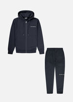 Off The Pitch Duplicate Sweatsuit in Storm Grey. Turn up your style with this head turning sweatsuit. The hoodie features a large logo artwork on the back, and an injection logo on the left chest. he jogger features a pocket with zip on the left knee, branded with injection printed logo. The elasticated waistband with drawcords, and elasticated cuffs create the perfect fit. The sweatsuit is made from 100% cotton.