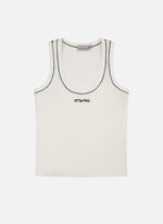 Wardrobe WMNS Tanktop in white for women. A racerback tank with a soft, athletic feel. Crafted from 95% cotton and 5% spandex, designed with a racer back bound shape and embroidery artwork to the chest. This tank top has a slim fit.