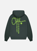The 3D Off Hood in forest green for men. A statement hoodie that balances casual function with graphic identity. Constructed from 80% cotton and 20% polyester, it includes a bold 3D "OFF" print on the back and chest embroidery that enhances its premium presence. The kangaroo pocket and darted hood are finished with a crossover neckline, while ribbed trims and single-needle stitching deliver structure and comfort. Branding appears on the chest and back. This Hoodie has a regular fit.