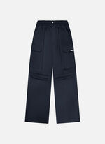 Utility Mira Pants in navy for women. A clean, utility-inspired silhouette for everyday wear. Crafted from 69% cotton, 27% nylon and 4% spandex, with belt loops at front and back, side leg pockets and tonal injection print artwork to the left leg. Branding is placed on the side of the leg. These trousers have a regular fit.