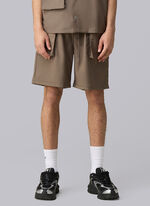 Gemaakt van 100% katoen in een premium interlock stof. Voorzien van een elastische tailleband met platte trekkoorden, steekzakken aan de zijkant en achterkant en een leren patch met embossed logo. Een raw edge zijpaneel en onafgewerkte zoom maken het ontwerp af.
