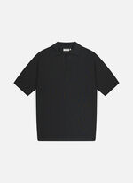 The Wardrobe Essentials Oversized Polo in black for men. A minimalist polo shirt in a relaxed shape. Made from 100% cotton with dropped shoulders and tonal embroidery on the chest.