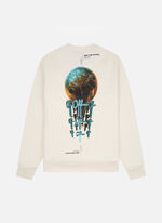 De World Crewneck in Off White voor heren. Een grafische trui met een wereldse uitstraling. Gemaakt van 80% katoen en 20% polyester, met een grote wereldbol print op de achterkant en een klein logo op de borst. Geribbelde hals, zoom en boorden maken het af. Branding is zichtbaar voor- en achterop. Deze crewneck heeft een regular fit.